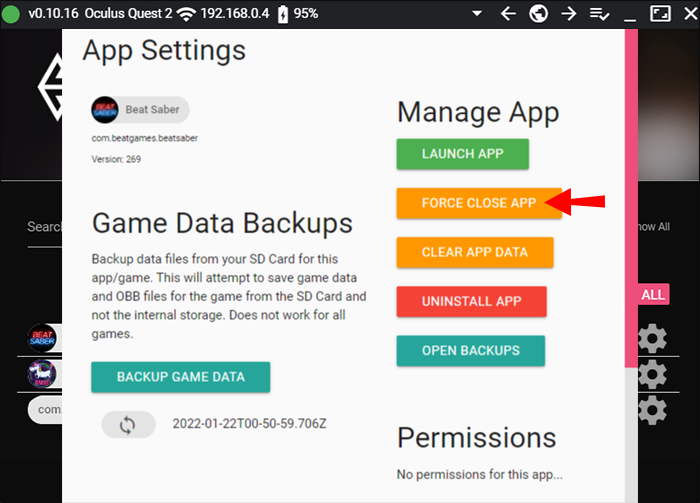 Backup Game Data OPTIONAL STEP 3. Here I have exp. Backup Beat Saber Optional It is a good idea to create a backup off Beat Saber before moving on.